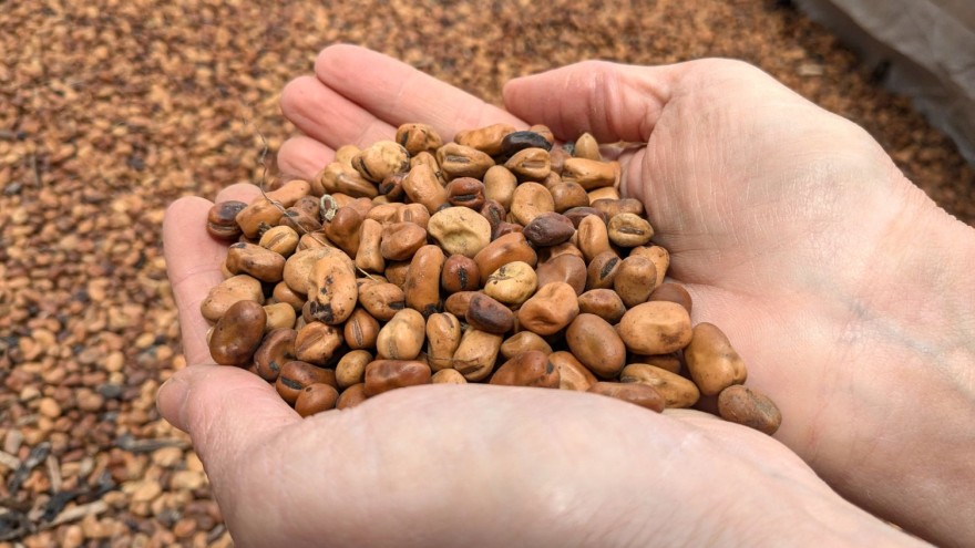 Sie experimentieren seit drei Jahren und in diesem Jahr zum zweiten Mal in vollem Umfang. Sie haben jetzt zehn Durchgänge zufriedenstellend durchgeführt. Dabei berücksichtigen sie Dinge wie Klima, Trockenheit, Feuchtigkeit und zum Beispiel auch die Verfügbarkeit der Bohne. "Ist sie verfügbar? Wann können wir säen? Und natürlich ist auch die Reaktionen der Tiere wichtig“.